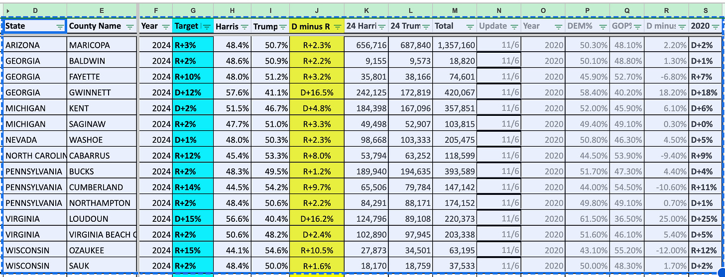 Trump outperformed targets in suburban counties, particularly in Pennsylvania and Georgia