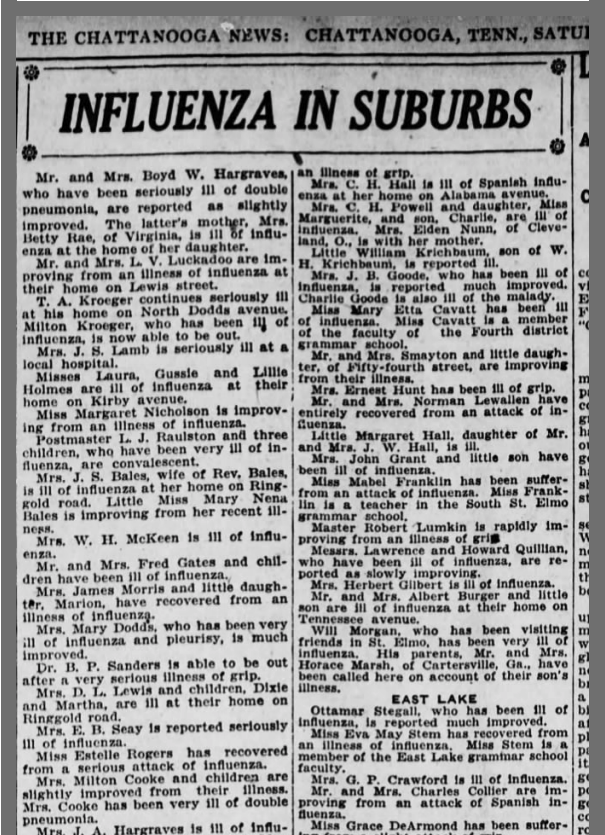 Still... how is it in that 1918 I get more relevant / detailed information than I can in 2020?! HIPPA laws wouldn't allow you to publish the names but at least we've know a bit more about who and what and where instead of "5 outbreaks" in this zipcode.