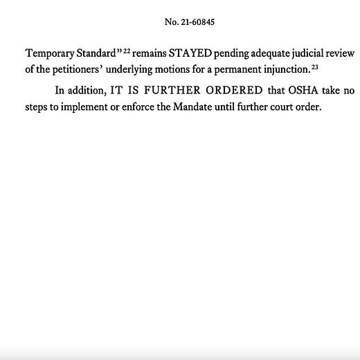BREAKING NEWS: The OSHA vaccine mandate impacting millions of Americans remains suspended!