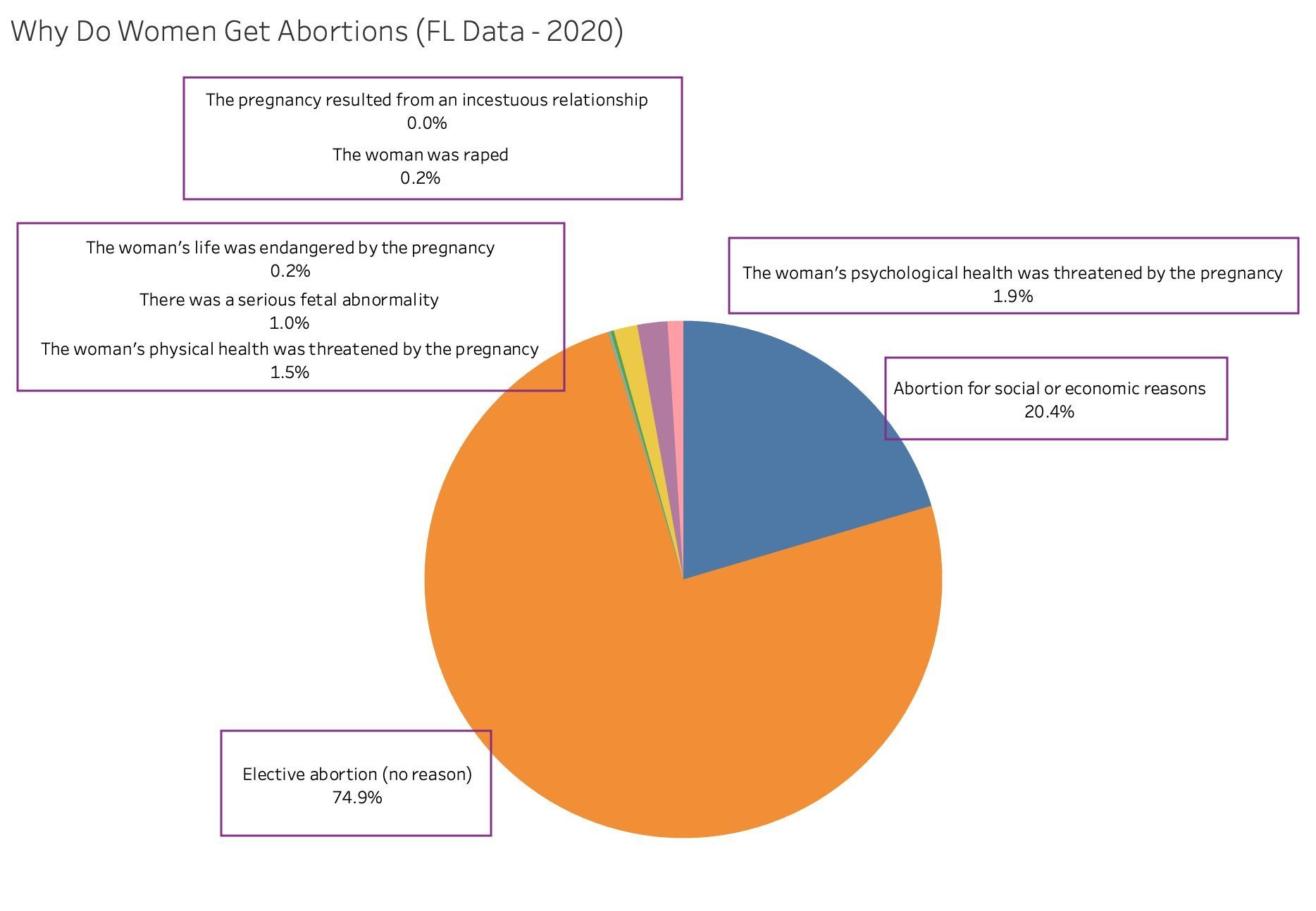 According to a 2020 Florida annual abortion report, less than 1% of abortions are from defects. 98% of abortions are elective.
