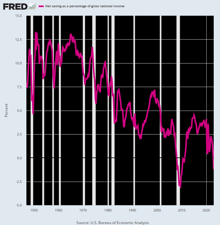 Net National Savings As A Percent Of National Income, 1948 to 2023