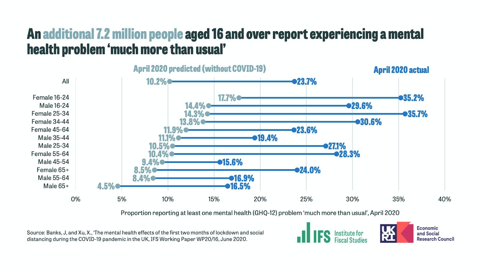One of the results of the lockdown is a large increase in mental health issues as routines are disrupted and people are unable to interact with each other. This has caused an increase in mental health problems, particularly for the young.