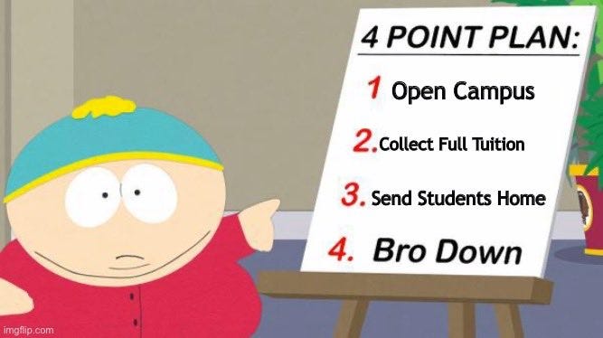 The primary focus for today is how universities and other educational facilities are handling COVID-19.