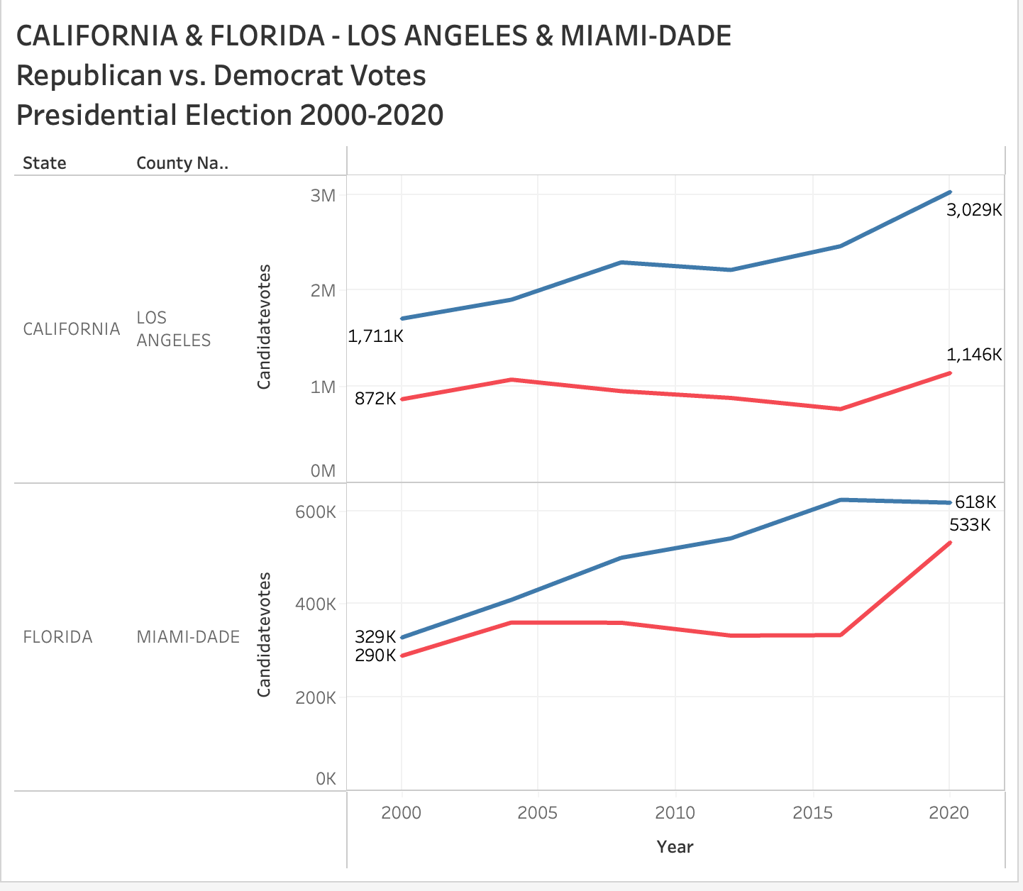 Then you look at counties like Miami Dade in Florida which while still voting for Democrats is turning heavily red and the trajectory is pretty powerful. Compared to Los Angeles Miami has some hope.