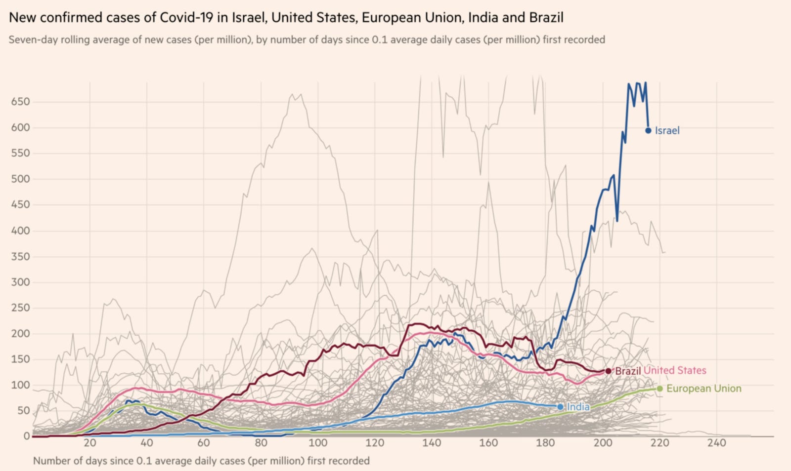 New Confirmed Cases of COVID-19 in Israel, United States, European Union, India and Brazil