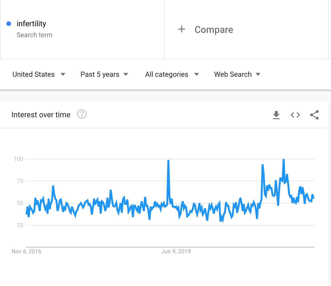 I’ve noted before how searches for the term “infertility” are getting up there: