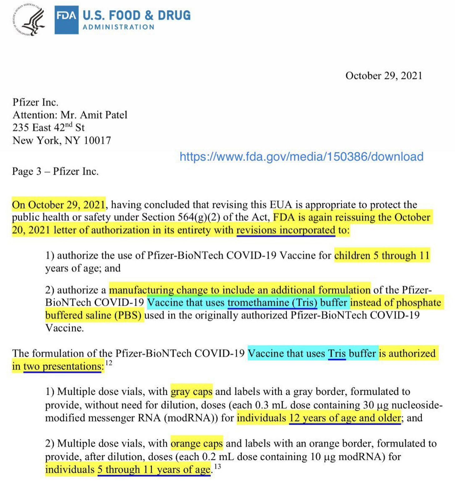 3) FDA/Pfizer letter raising eyebrows