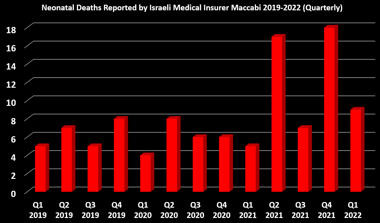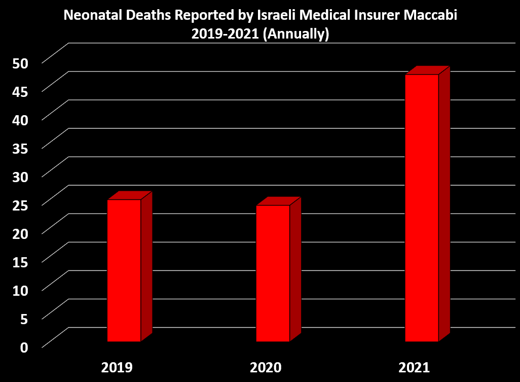 A fearless, selfless Israeli researcher named David Shuldman has worked tirelessly to get data released from the clutches of government agencies. He recently obtained data via FOIA request on neonatal deaths from the Israeli health insurance fund Maccabi, which covers about 25% of Israelis.