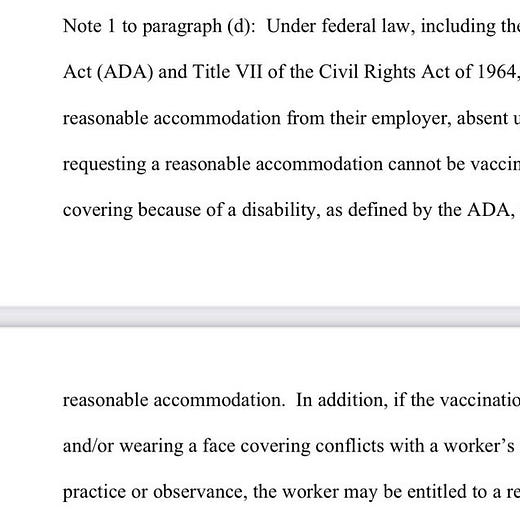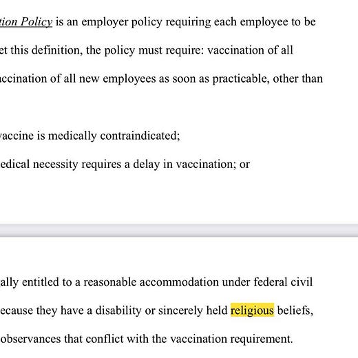Some quick reactions and analysis. Looks like work-from-home folks are exempt and there is a religious exemption: