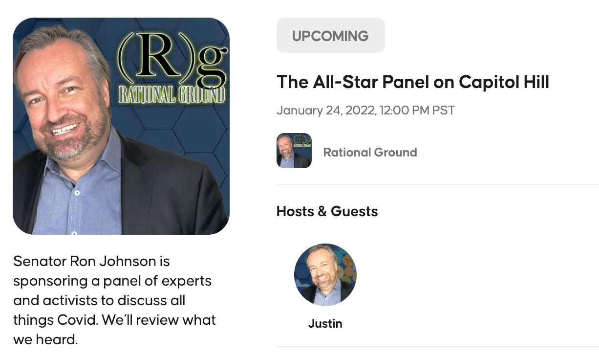 Podcast today at noon pacific - we’ll be discussing the all-star panel held by Senator Ron Johnson today in Washington, D.C. As of this email the panel is still ongoing. You can listen live here.