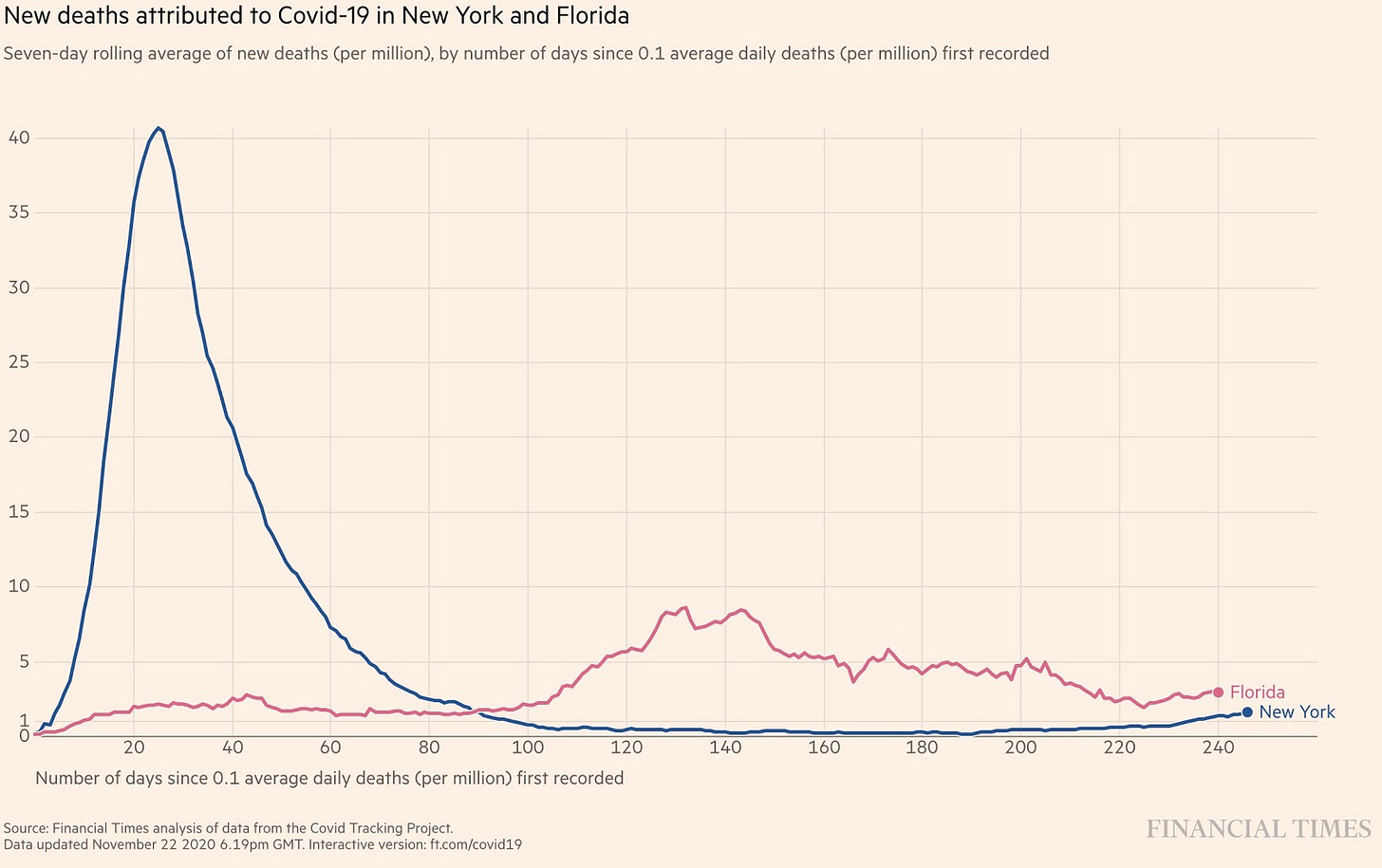 New Deaths Attributed to COVID19 in New York and Florida