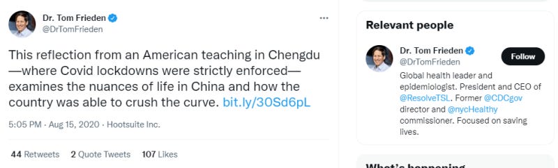 But in the meantime, it’s worth remembering who it was exactly who advocated these insane Zero Covid lockdown policies and urged us to emulate them: Our own media elites and health officials.