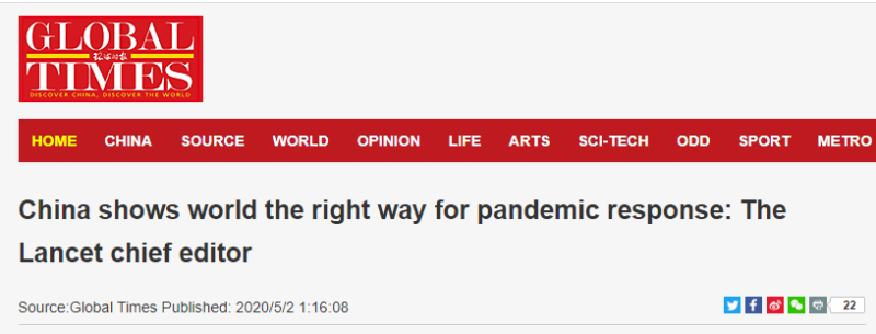 Here’s Richard Horton, Editor-in-Chief of the once-esteemed medical journal the Lancet, touting China’s response.
