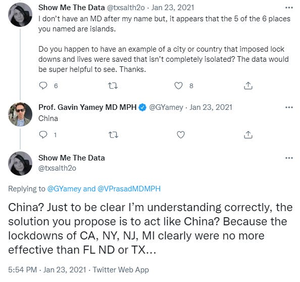 Here’s Devi Sridhar urging the UK to copy China’s “early and hard lockdown.”