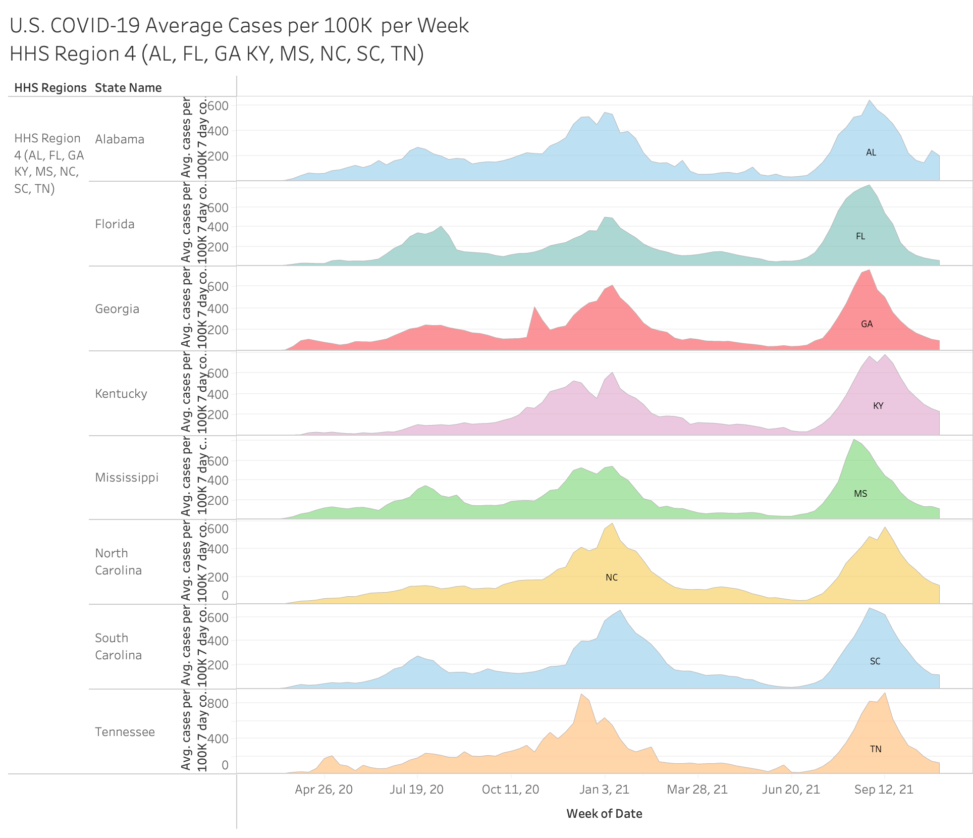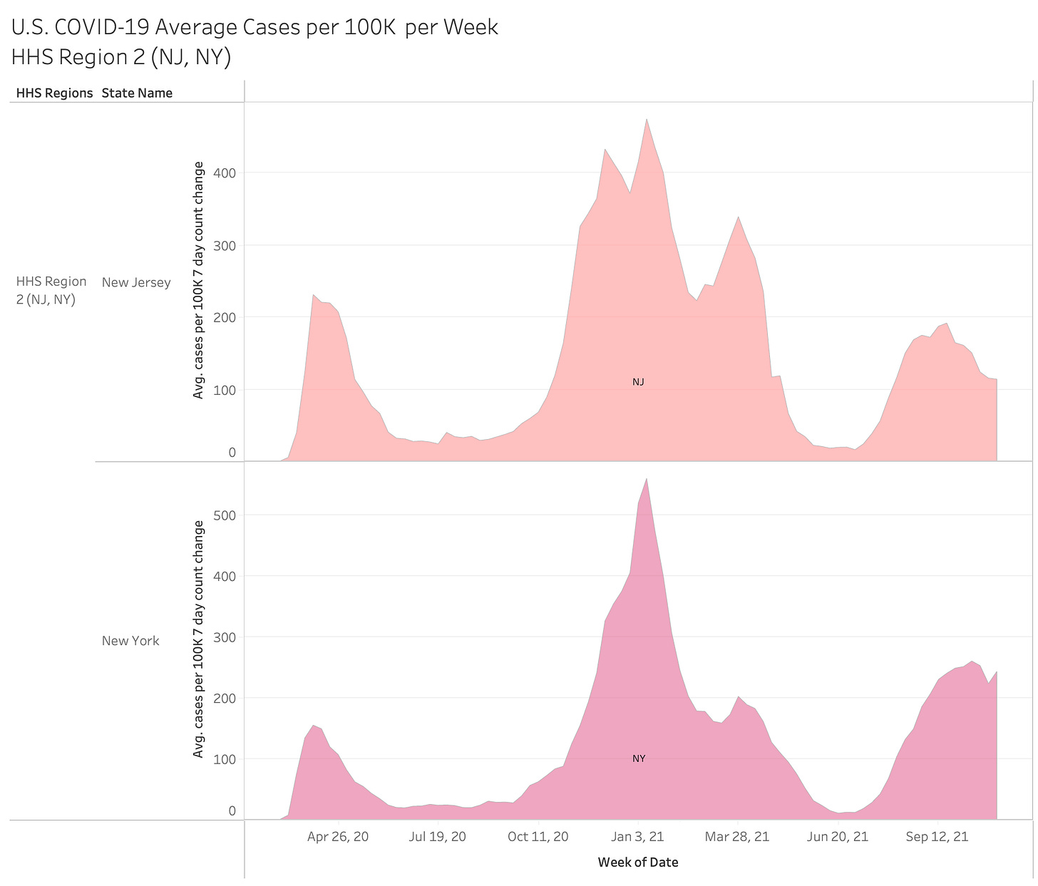 Here are the individual full pandemic cases per 100K by HHS region