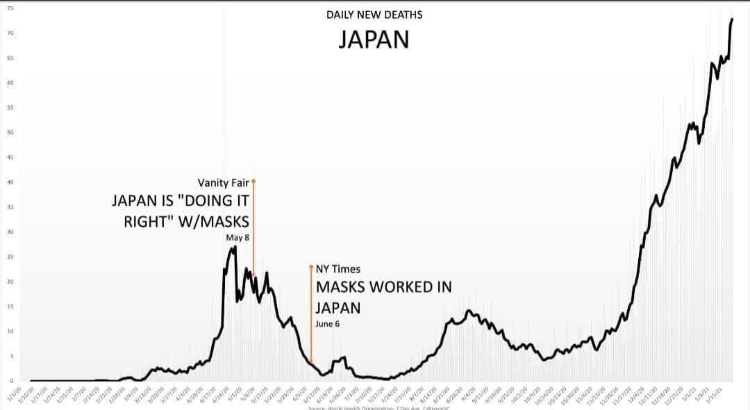 That’s why I sympathize with those opposing even Covid-19 control measures that have some merit such as masks. Masks can reduce spread by blocking virus that’s attached to droplets, either outgoing or incoming, although they are of little value with the main problem which is fully aerosolized virus. Even for droplets a mask is hardly foolproof, which is why of late the omnipotent Dr. Fauci has told us that double masking “just makes common sense” (before pointing out that there’s no data to support that claim) while others now urge triple masking. Can a plastic bag be far behind?