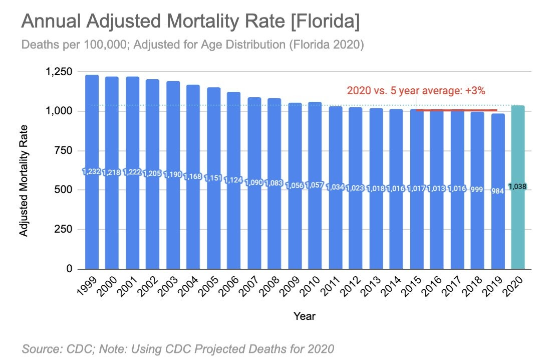 In 2020, Florida has only 3% excess deaths yet it had some of the least restrictions.
