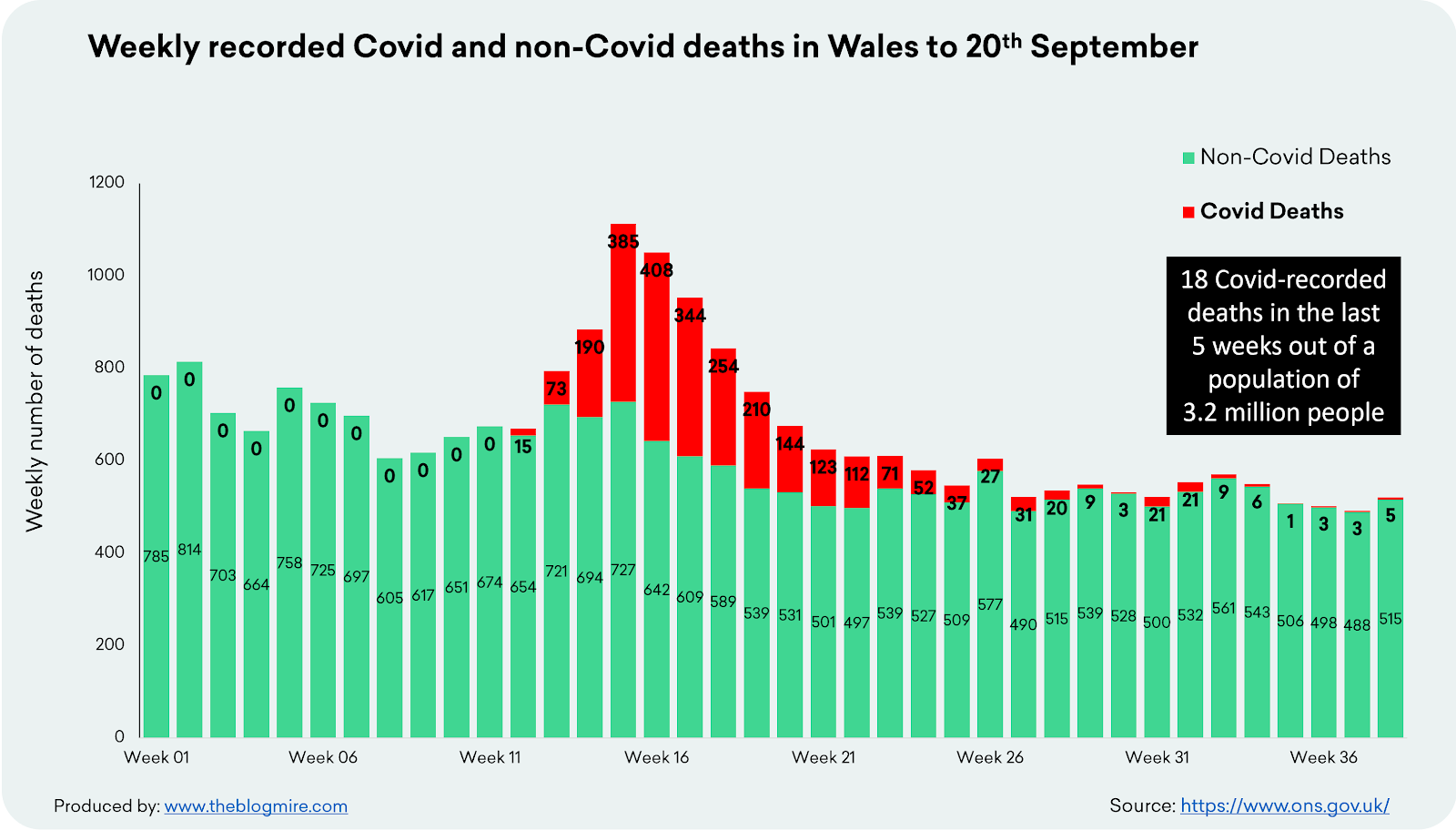 Weekly Recorded COVID and Non-COVID Deaths in Wales to 20th September