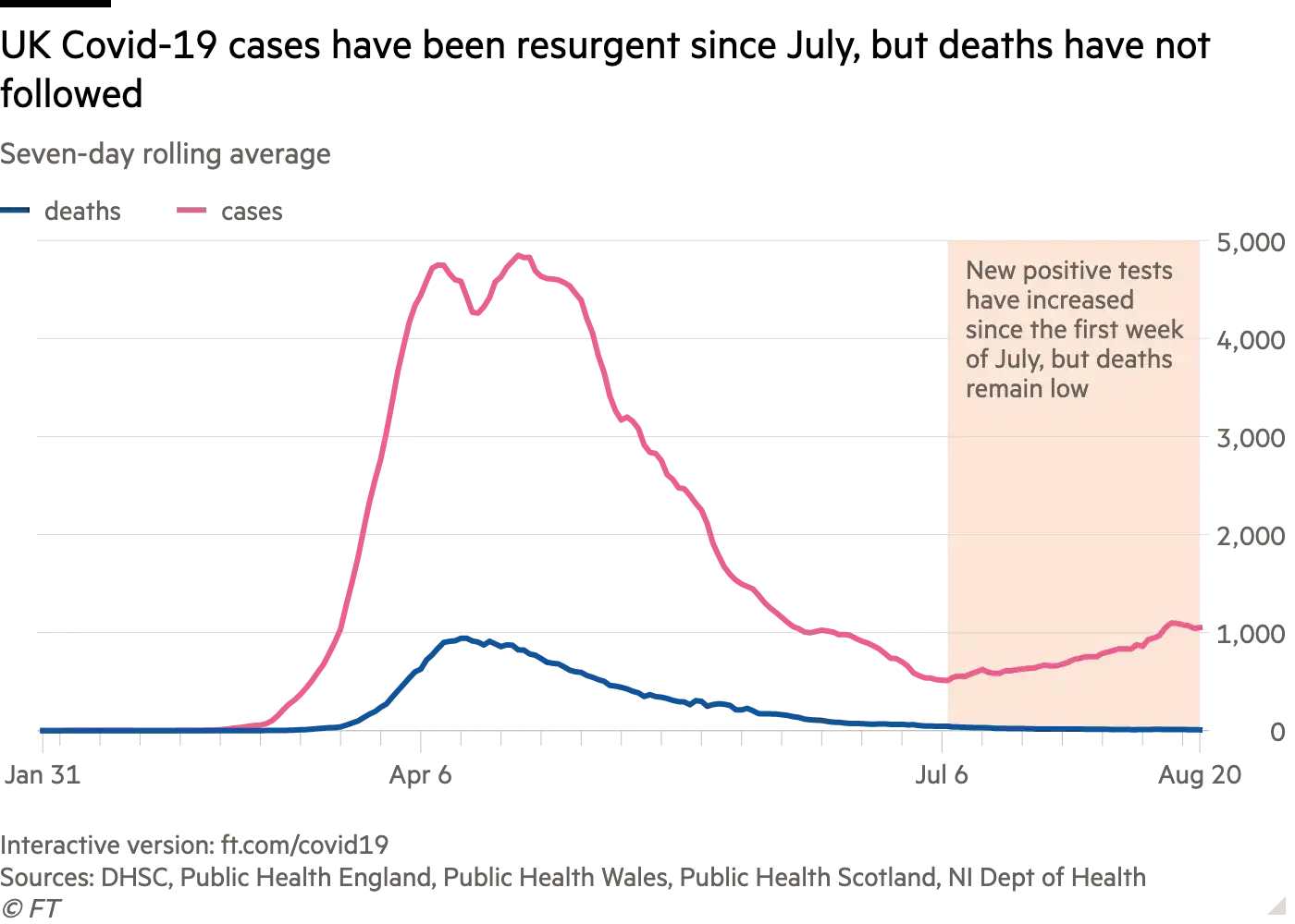 UK Covid-19 Cases Have Been Resurgent Since July, but Deaths have not Followed