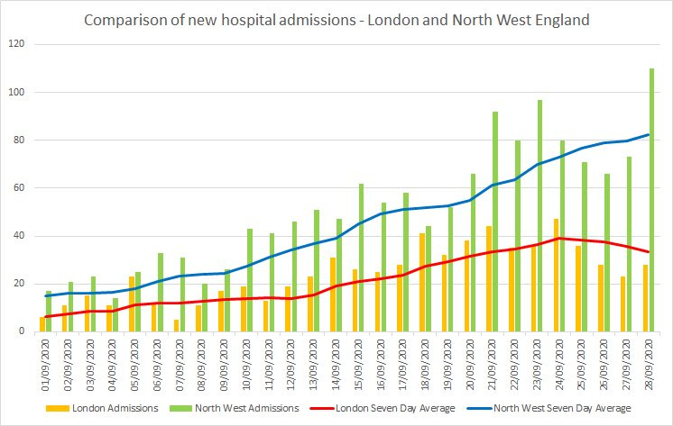 Admissions in London are gradually declining while cases in the Northwest keep climbing.