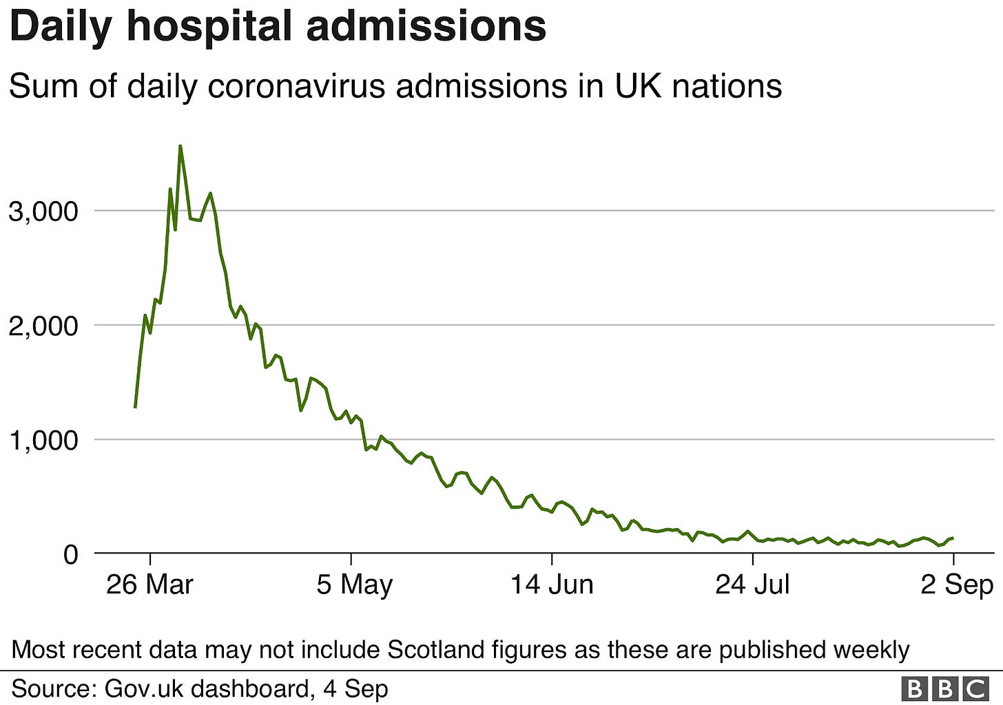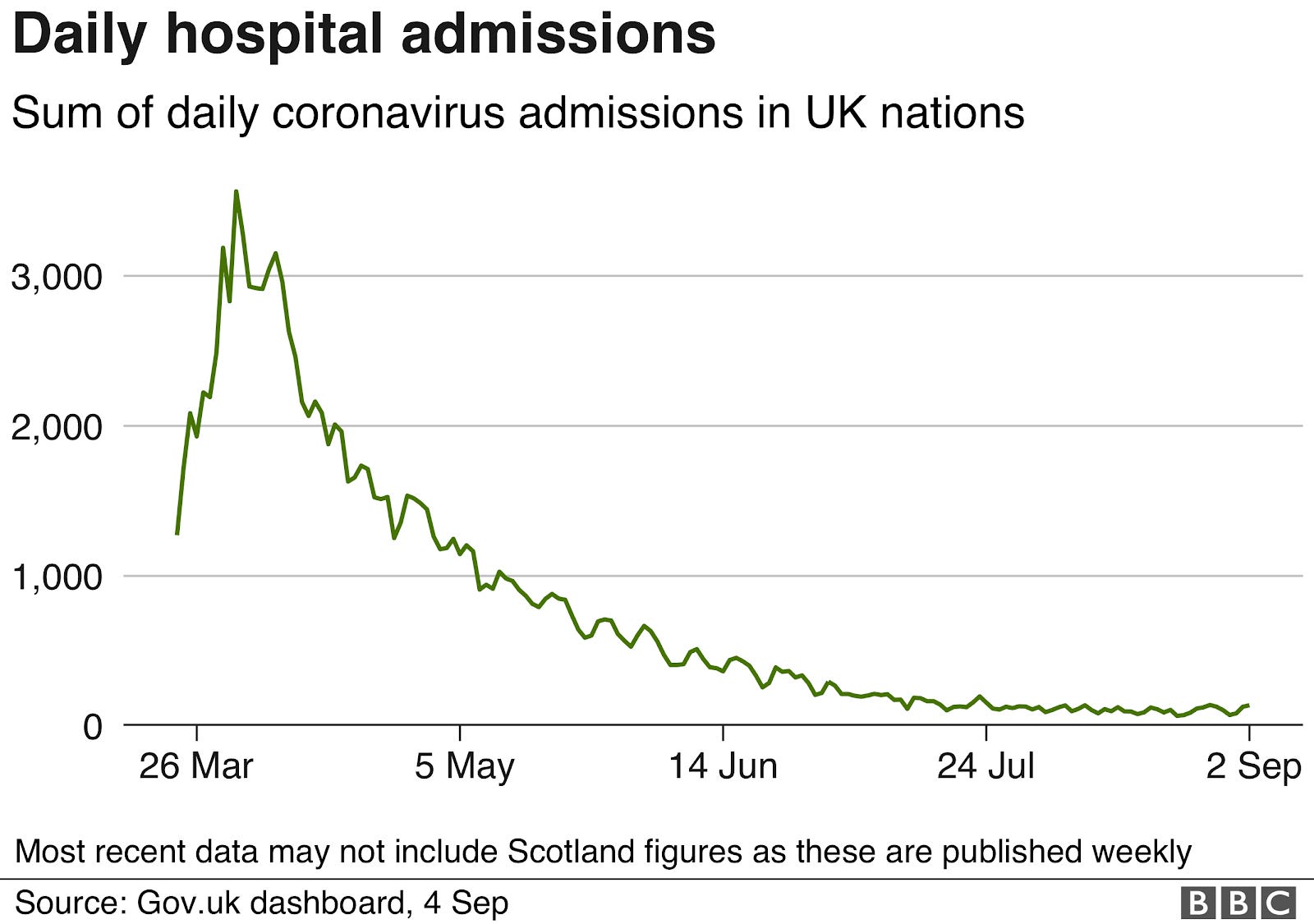 Daily Hospital Admissions: Sum of Daily Coronavirus Admissions in UK Nations