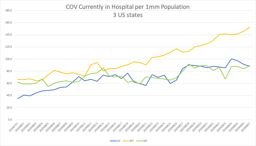 COV Currently in Hospital Per 1mm Population, Three US States