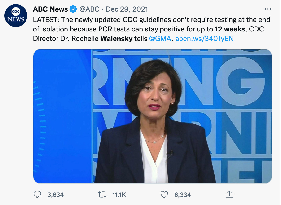 We’ve been saying for almost two years now that the PCR tests are picking up a BUNCH of false positives. The CDC was forced to admit this over Christmas in the face of the massive Omicron surge - conceding that the tests back pick up COVID-19 remnants at 5 days or 75 days! Remember this?