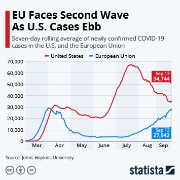 The media seems to still be stuck on the assumption that the United State’s response is worse than Europe while it’s Europe that’s seeing the steady climb in cases!
