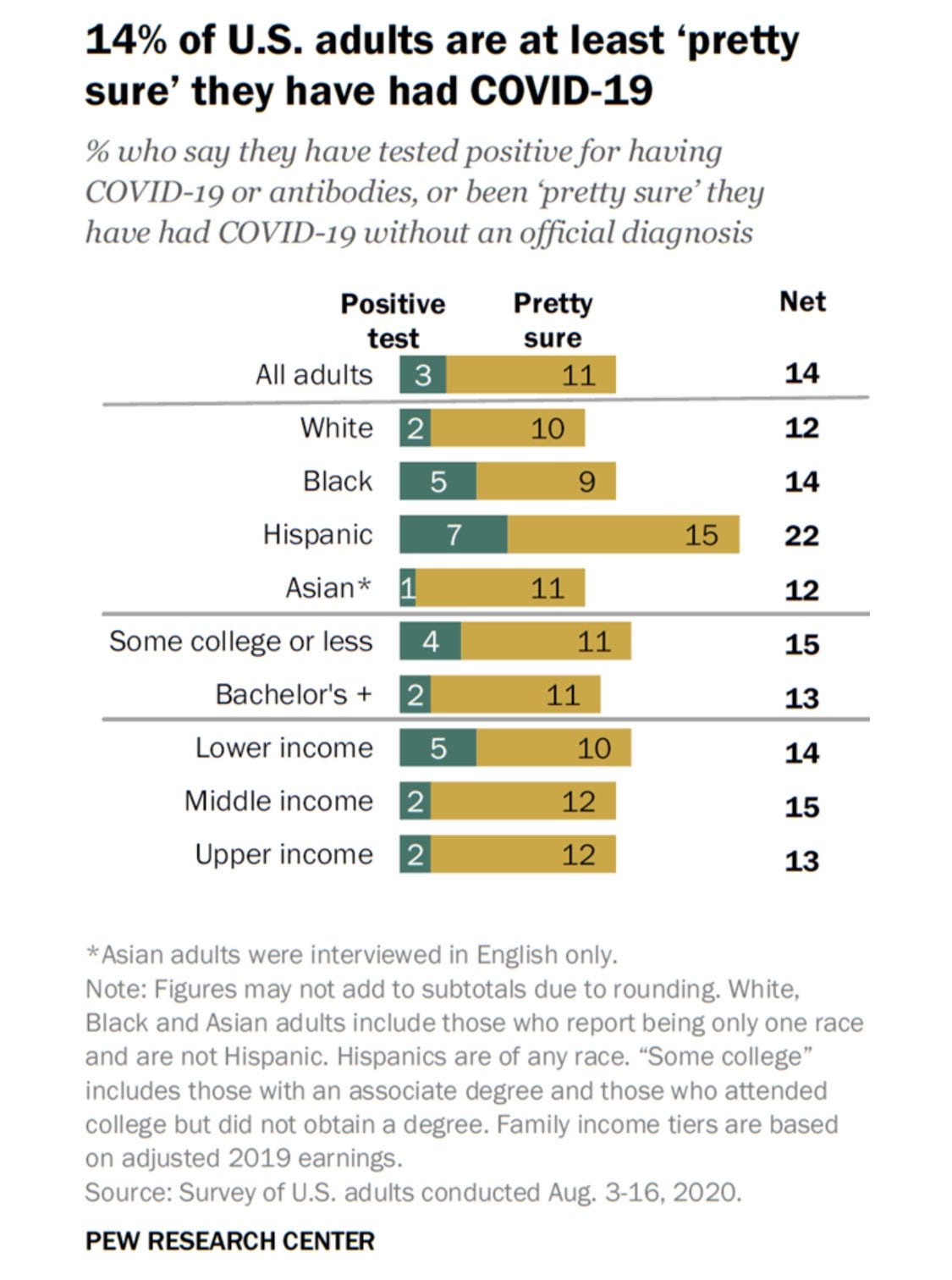 14% of U.S. adults say they have tested positive for COVID-19 or are ‘pretty sure’ they have had it