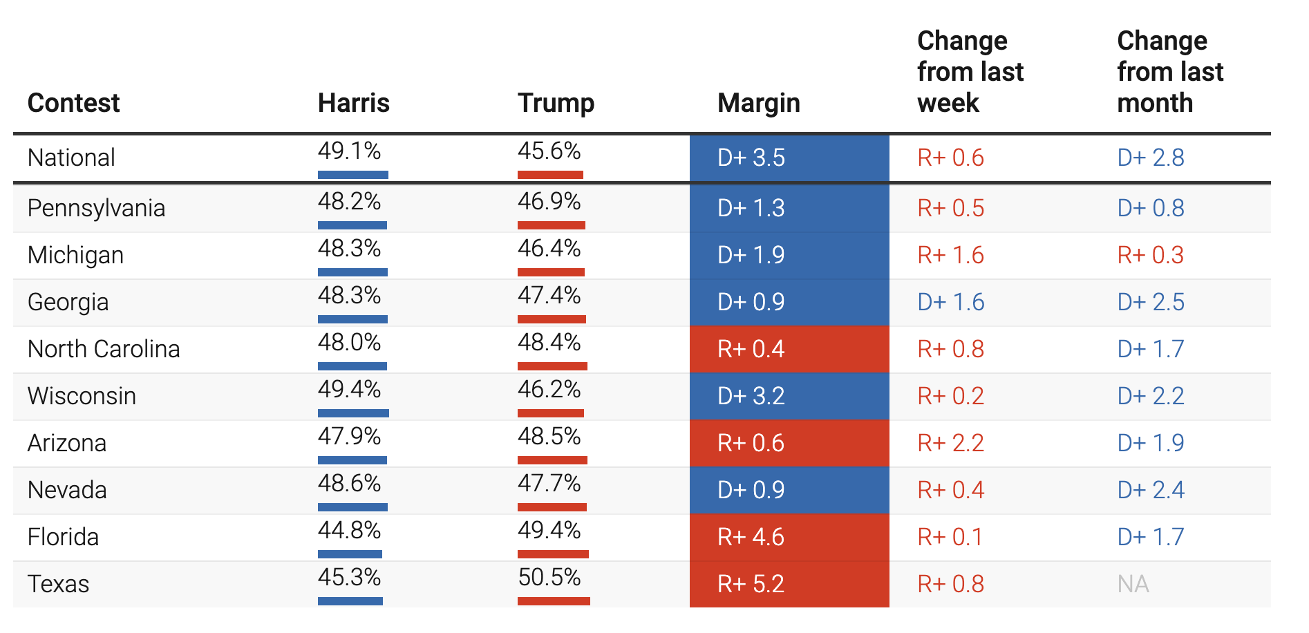 We’ve got a tight race on our hands, with some states already leaning Trump’s way and others hanging by a thread for Harris. The fact that Harris is only leading by 2-3 points nationally, when history shows Trump consistently outperforms his polling numbers, is reason enough for Democrats to worry.