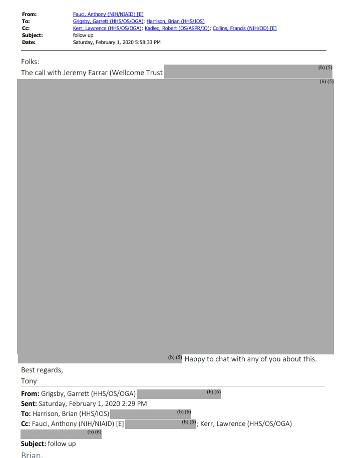 The unredacted version email is an astounding indictment of how disingenuous Dr Fauci has been and a keen example on how his team at the NIH and NIAID have abused the redaction process: