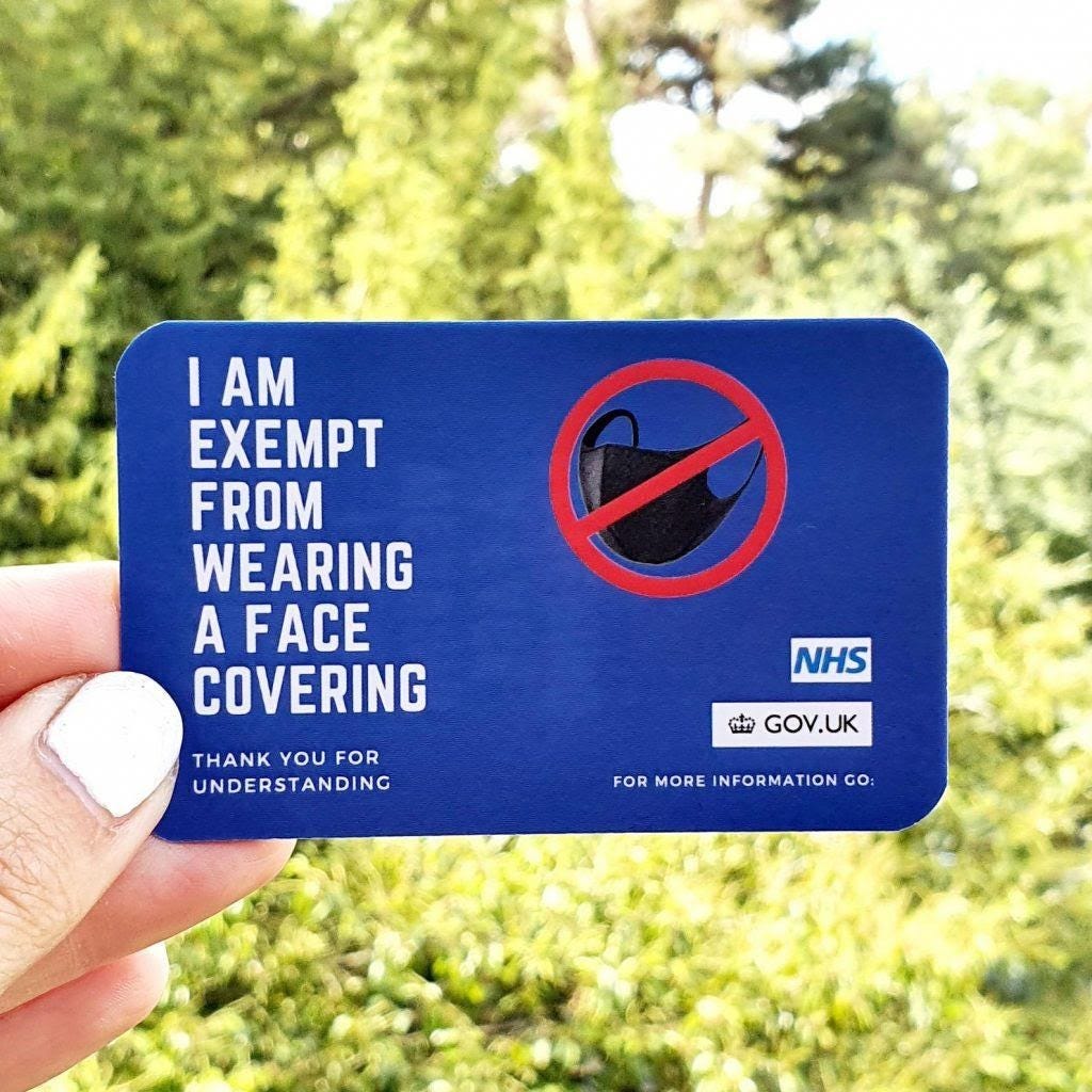 UK govt hands out a “get-out-of-mask” card - https://www.civicmc.nhs.uk/files/2020/06/Face-Covering-Exemption-Cards.pdf