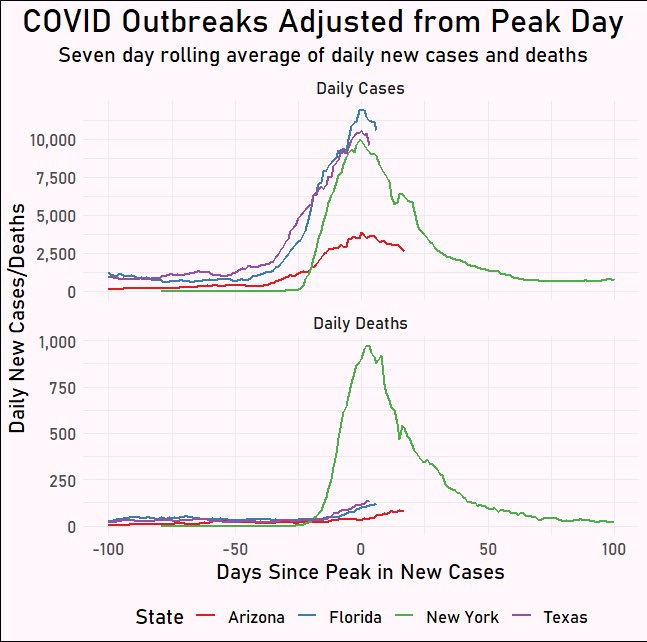 Texas, Arizona, and Florida are on the downward slope