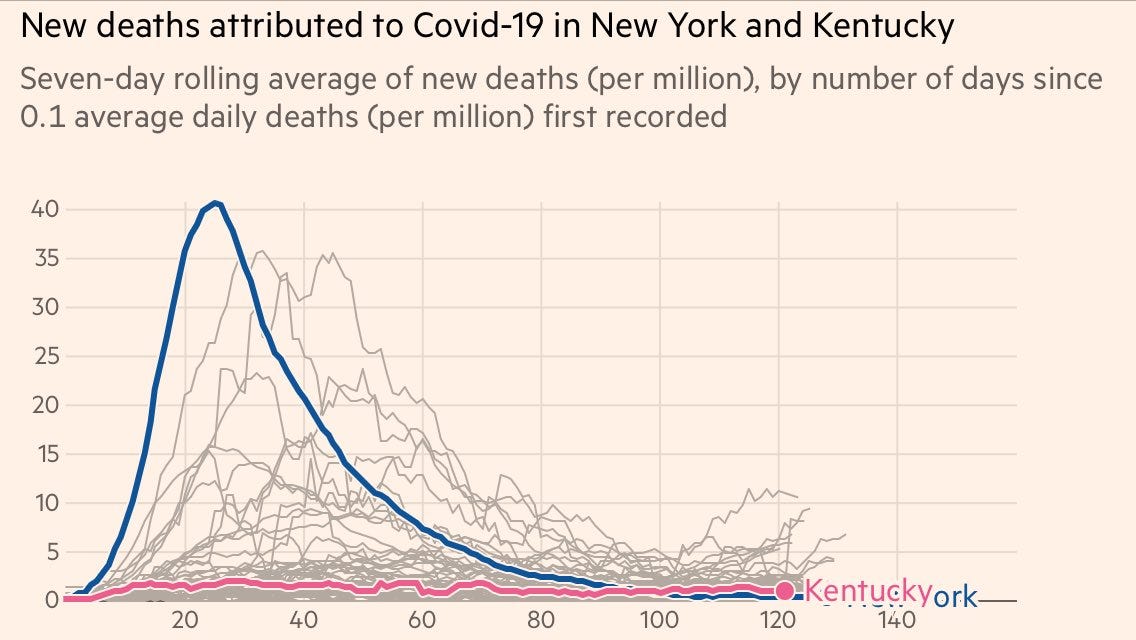 New York vs Kentucky COVID 19 deaths