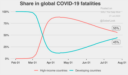 High-income vs Developing Countries COVID 19 fatalities as a percentage