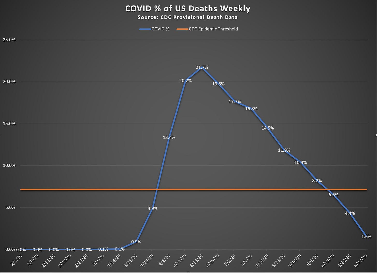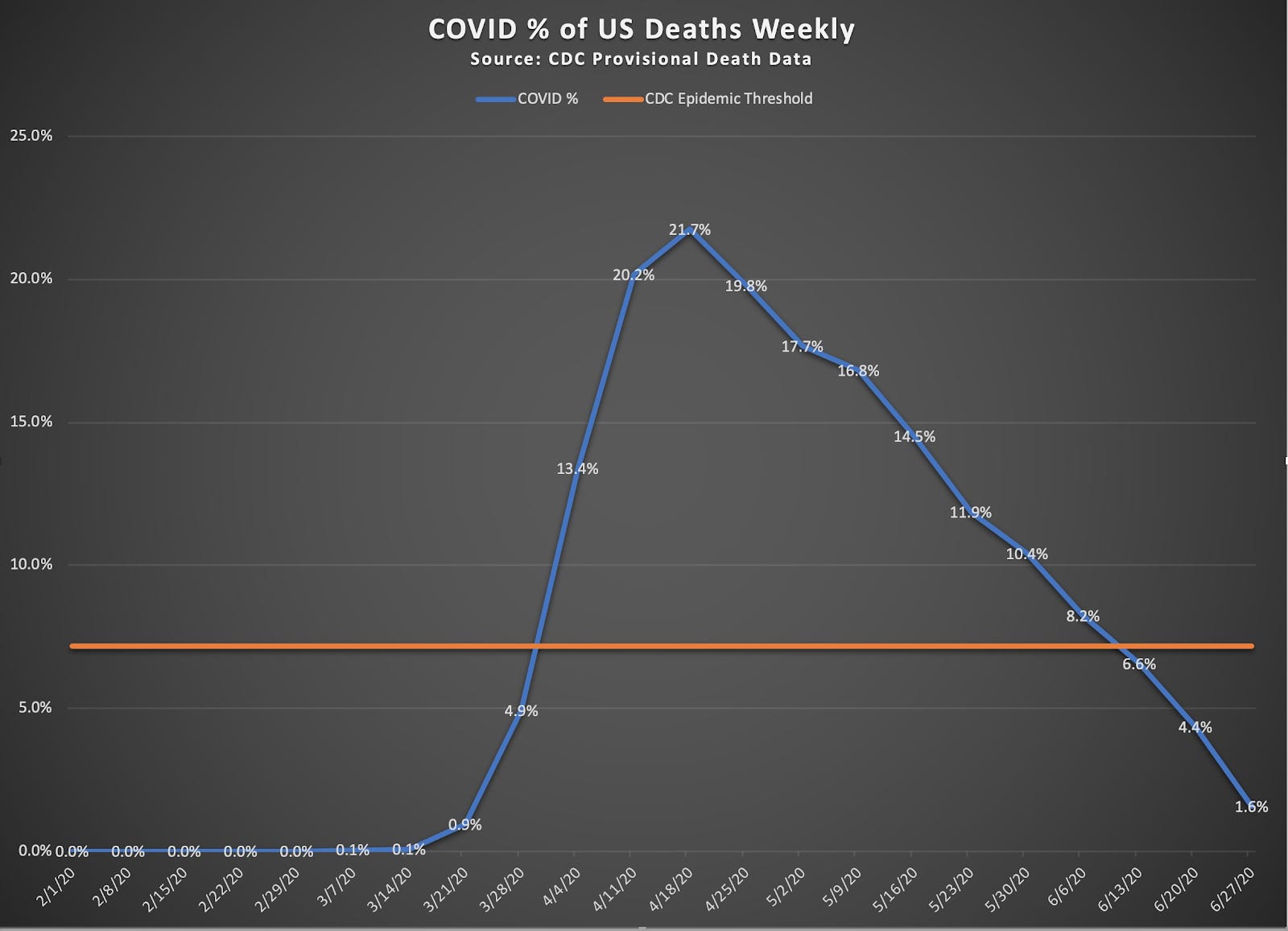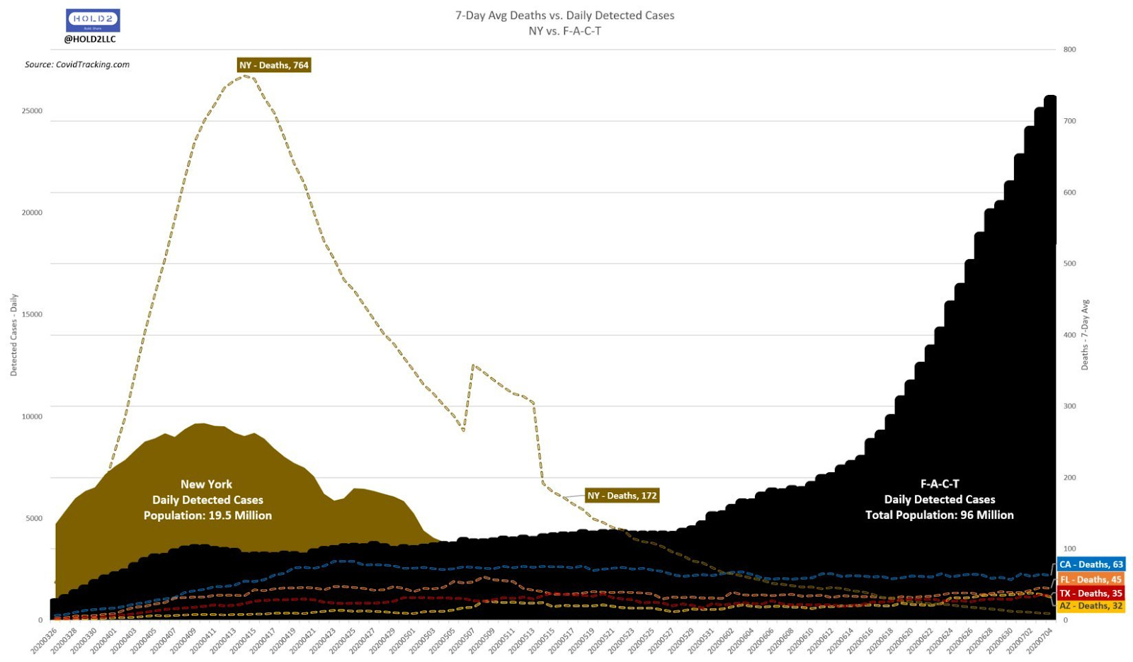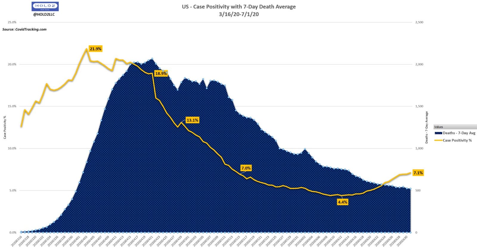 With the increase in coronavirus, many people experience mild symptoms and the focus should be on the hospitalizations and deaths. “The newer hotspots of Florida and Texas, the median age of those infected has varied from under 30 to about 40 -- and those flareups mean little, so long as those hardier folks recover as they would from any other virus or disease.”