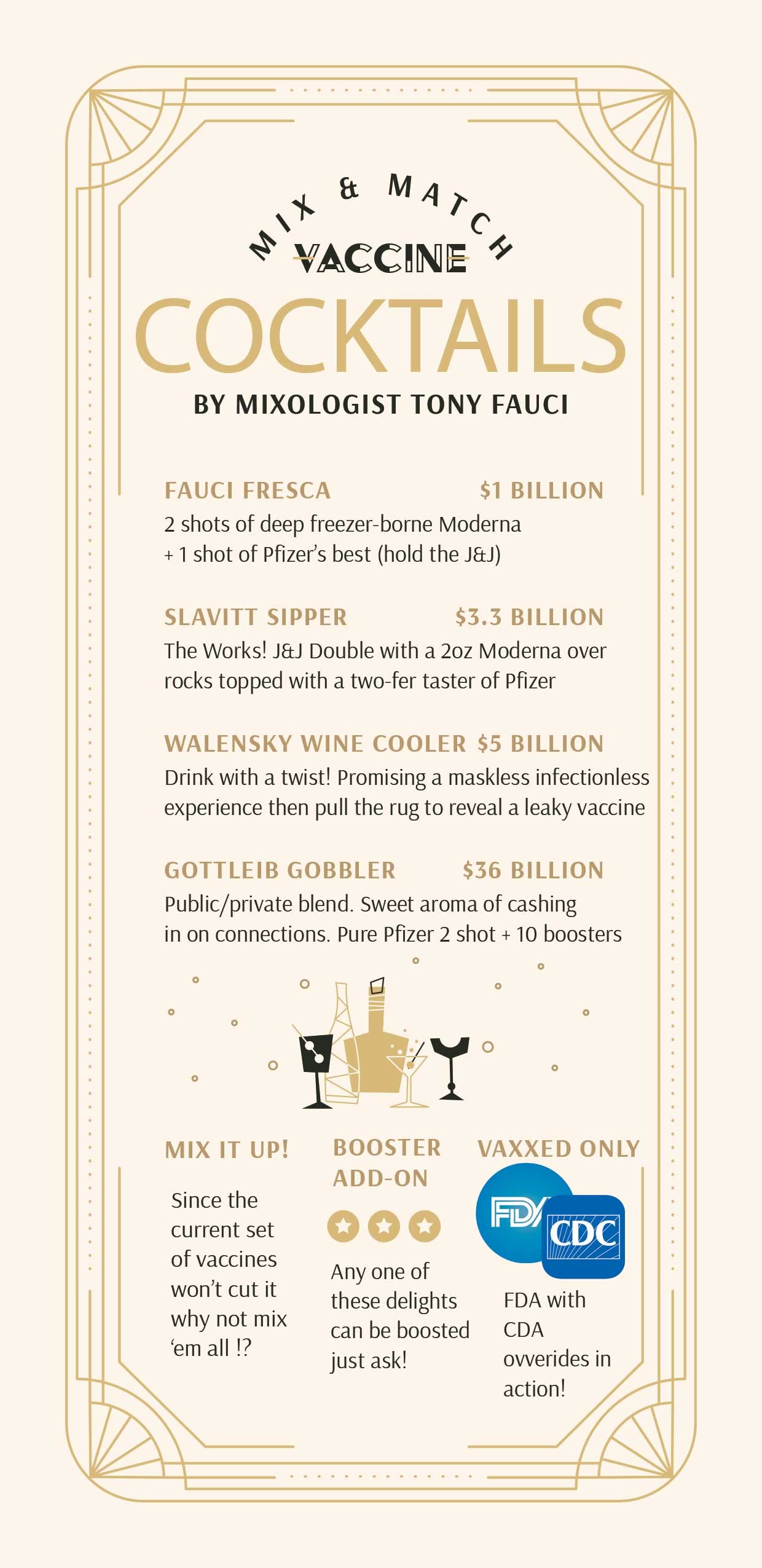 Exclusive: Leaked List of Vaccine Cocktails!FDA approves "mix-and-match" vaccinesJustin HartOct 18, 2021378ShareWhat else can we say but… We’ve lost our ever-lovin’ mindsSubscribePreviousNext