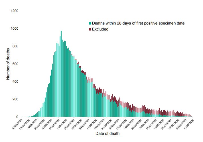 The United Kingdom recently removed some deaths from the COVID-19 death toll count after allegations of inaccuracy arose regarding the exact cause of death. With the excluded deaths, the decline in COVID-19 deaths is faster than it seemed in practice.