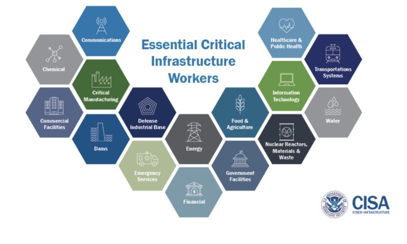CISA explained the exception. It includes this helpful graphic of those who were entitled or even required to work while everyone else stays home.