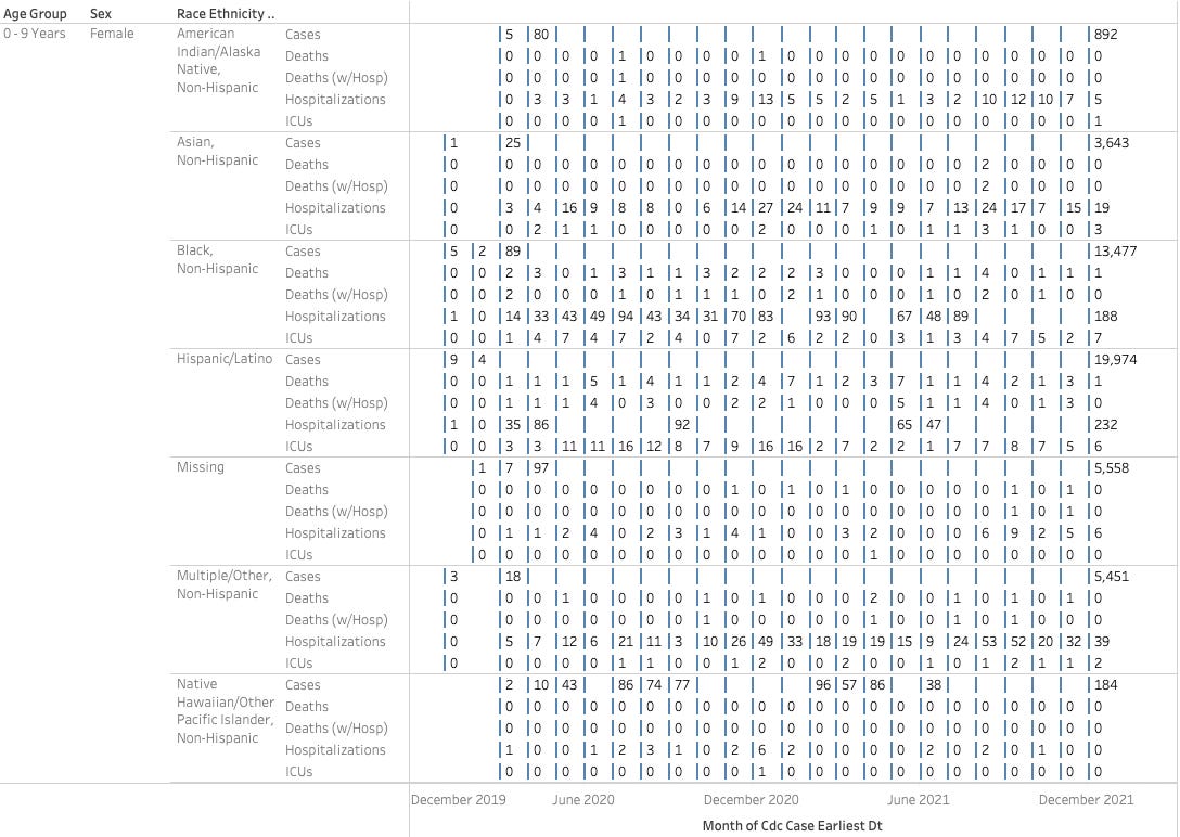CDC_CSF_AGE_RACE_STATS.xlsx - parsed from the 5 gigabyte CDC Case Surveillance file showing all of the core stats by age, race, and month.