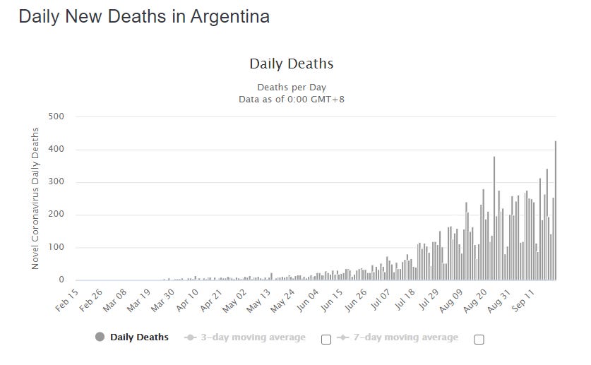 COVID-19 deaths in Argentina are rising. Much like Peru, Argentina enacted strict quarantine measures and lockdowns.