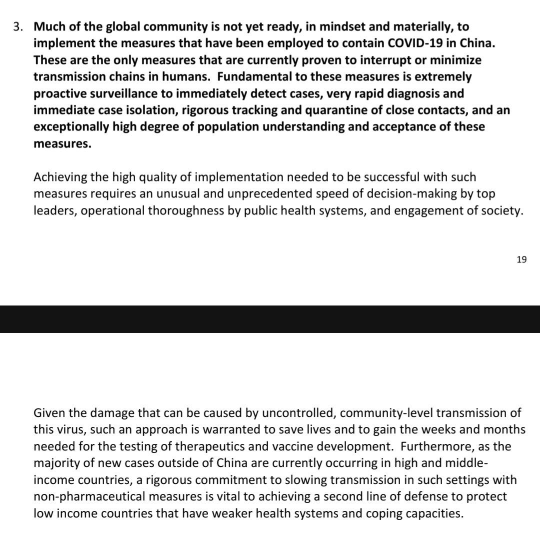 He then quoted directly from WHO documents praising China’s “rigorous commitment to slowing transmission” through “non-pharmaceutical measures” and noting how provinces and communities sent “supplies into Hubei.”