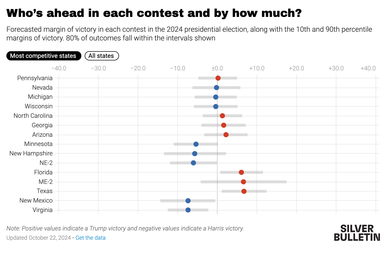 Polling Numbers: A Tight Race Nate Silver's averages in Pennsylvania have recently shifted back to favor Trump for the first time in months. As of now, Trump holds a 51.7% chance of winning the state, compared to 48.3% for Kamala Harris. Recent polls show the race is tightening, with Trump leading in some polls by narrow margins, and Harris still holding strong in others.
