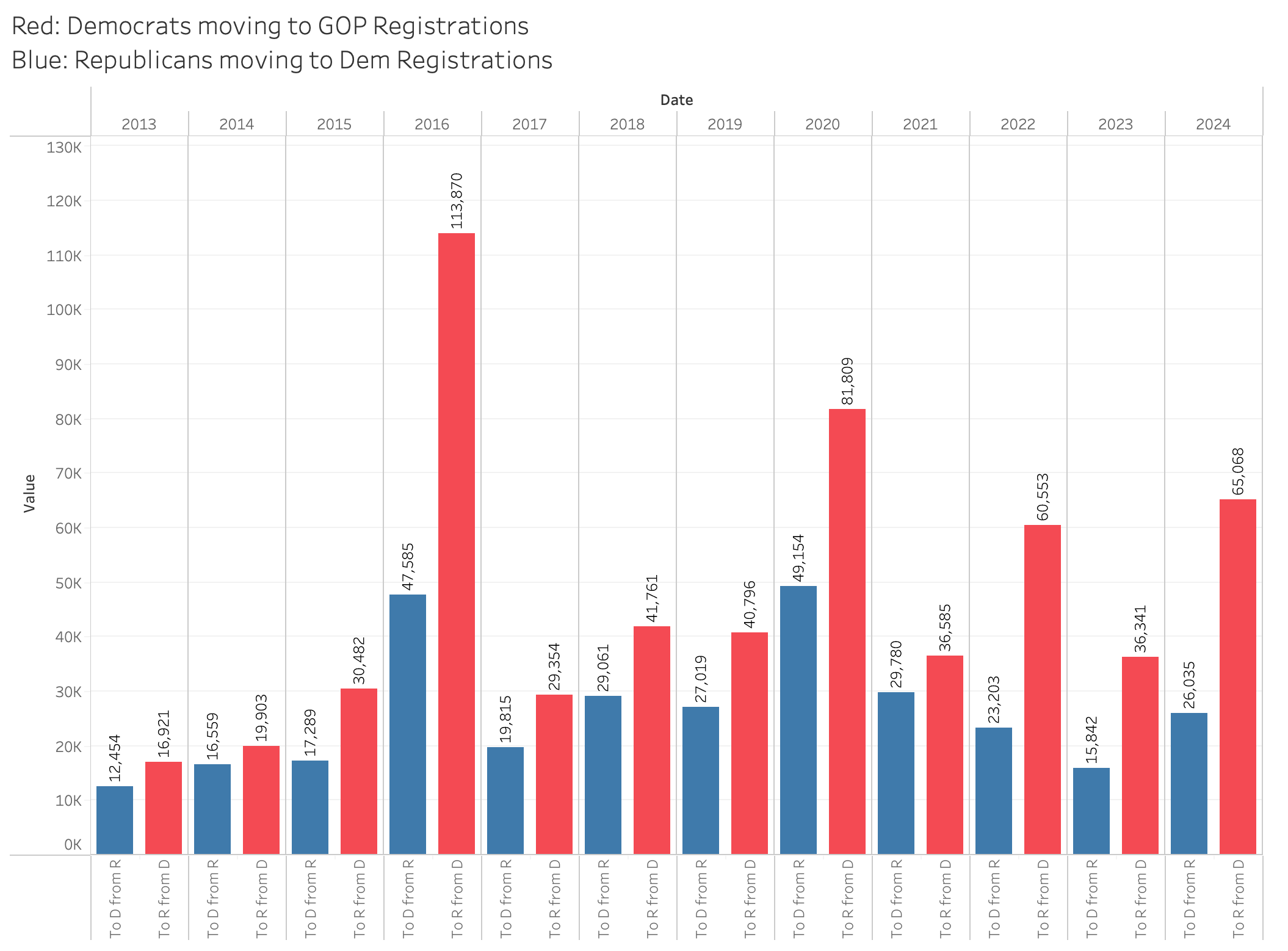 Party Registration Shifts Pennsylvania remains one of the few states that tracks party registration shifts, and the trend is clear: Democrats are flipping to the GOP at a higher rate than Republicans are switching parties. In the most recent year, 65,068 Democrats switched to the Republican Party, part of a continued dominant shift seen in the red-to-blue registration charts. This is contributing to the shifting dynamics in the state as Republicans focus on expanding their base.