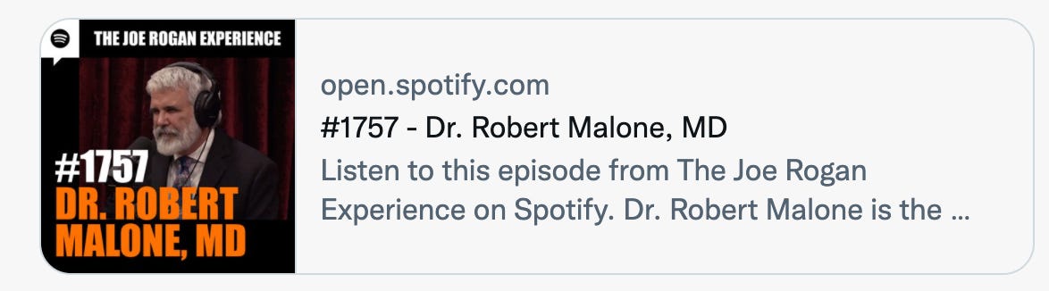 Dr. Robert Malone, of the patent holders of the technology to create mRNA vaccines, appeared on the Joe Rogan Experience on Spotify yesterday for a long-form conversation about Covid and his experience over the past two years. Dr. Malone was recently kicked off of Twitter so the timing brought even MORE attention to his stances: