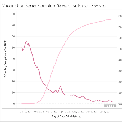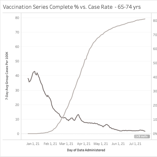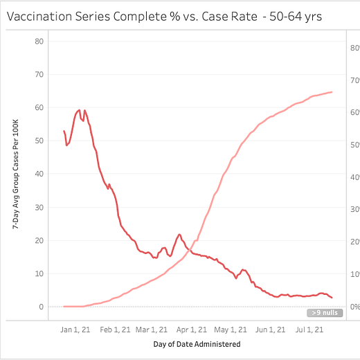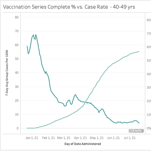 Back in July we tweeted that the CDC data mapping vax rates to COVID-19 case rates shows ZERO impact of the former on the latter: