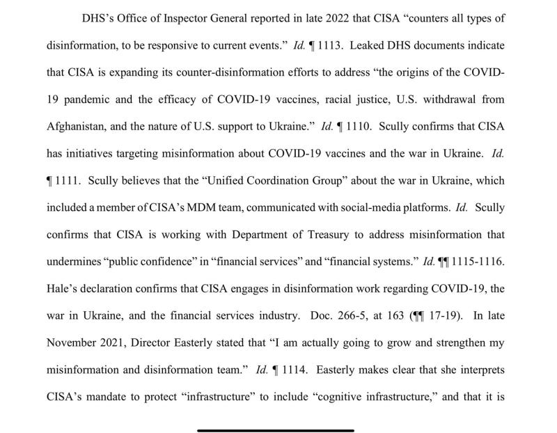 Additionally, while the government claims (again) they have shut all of this down, senior CISA official Brian Scully testified in a deposition that they have widened their net to even conversations happening about the US banking system, the war in Ukraine, the US withdrawal from Afghanistan, and racial justice.