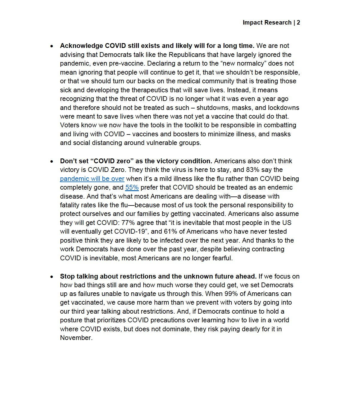 Impact Research is one of the top left-leaning strategy and polling firms in D.C. Yesterday they crafted a memo to Democrats about the current state of Covid politics. The memo was originally published on PunchBowl.news