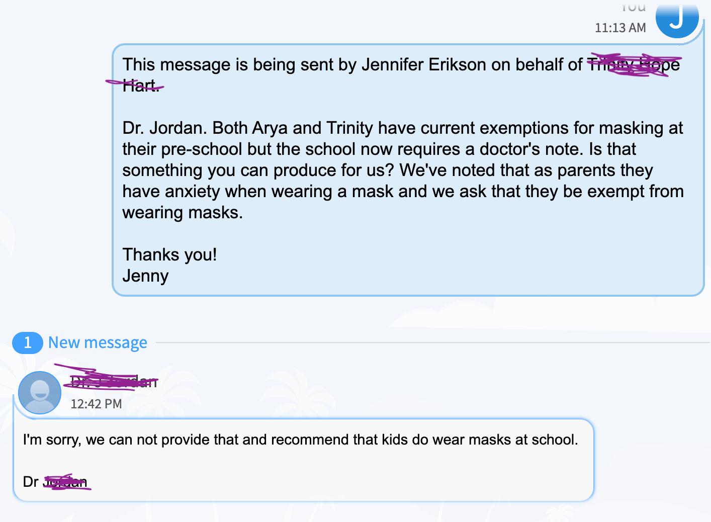 I’ve been working with the school to raise funds and find lawyers to fight this. In the end, we are out of time. The kids must have a legit medical note attached to their file to avoid masking.