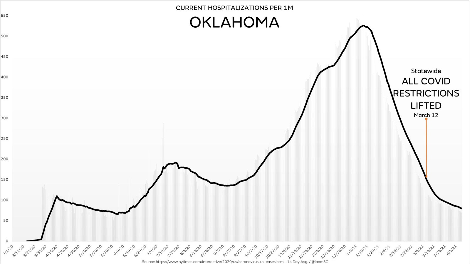 The U.K. has delivered at least one dose of Covid-19 vaccine to more than 47% of its total population. This means that well over half of all adults, and the vast majority of the most vulnerable elderly, have received a sufficient level of inoculation to reduce serious illness, death, and probably transmission dramatically for the several months it will take to deliver second doses. Rates of hospitalization and fatality tumble by the day.